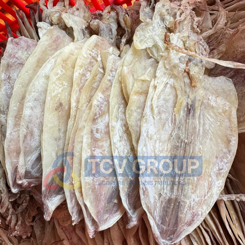 Hình dáng: Mực cỡ vừa, thịt không quá dày nhưng chắc, thân mực khô ráo, không ẩm mốc.